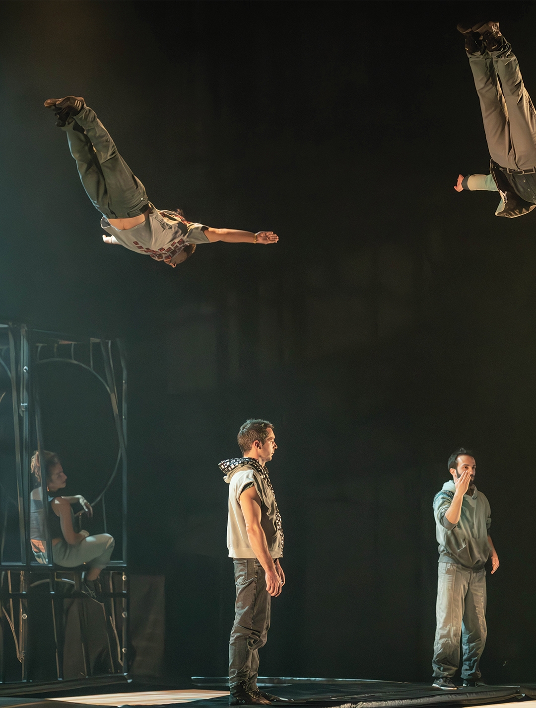 Conception, mise en scène et scénographie : Damien Droin – circassiens : Tristan Etienne, Maël Thierry, Hugo Couturier ou Damien Droin, Louise Aussibal, Aris Colangelo et Carl Rom Colthoff